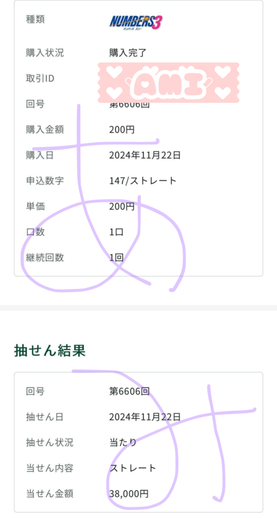 ナンバーズ3ストレート 38,000円的中🎯