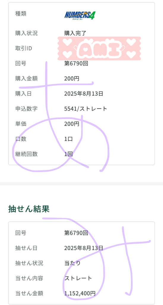 ナンバーズ4ストレート 1,152,400円 的中🎯
