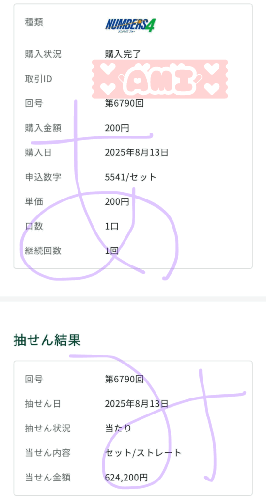 ナンバーズ4セットストレート 624,200円 的中🎯