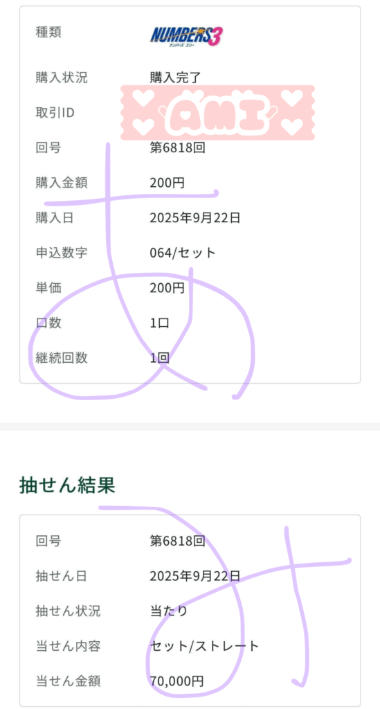 ナンバーズ3セットストレート 70,000円 的中🎯