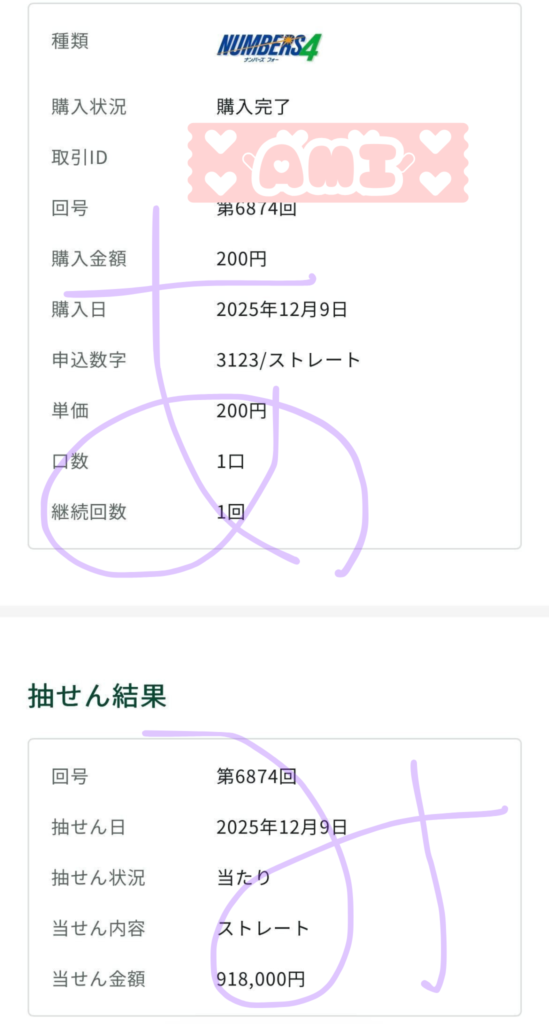 ナンバーズ4ストレート 918,000円 的中🎯