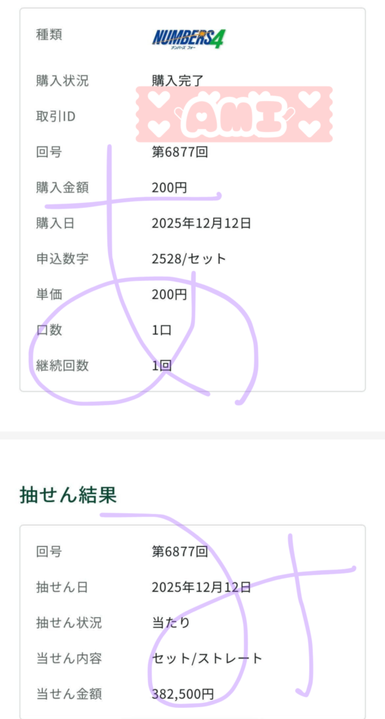 ナンバーズ4セットストレート 382,500円 的中🎯